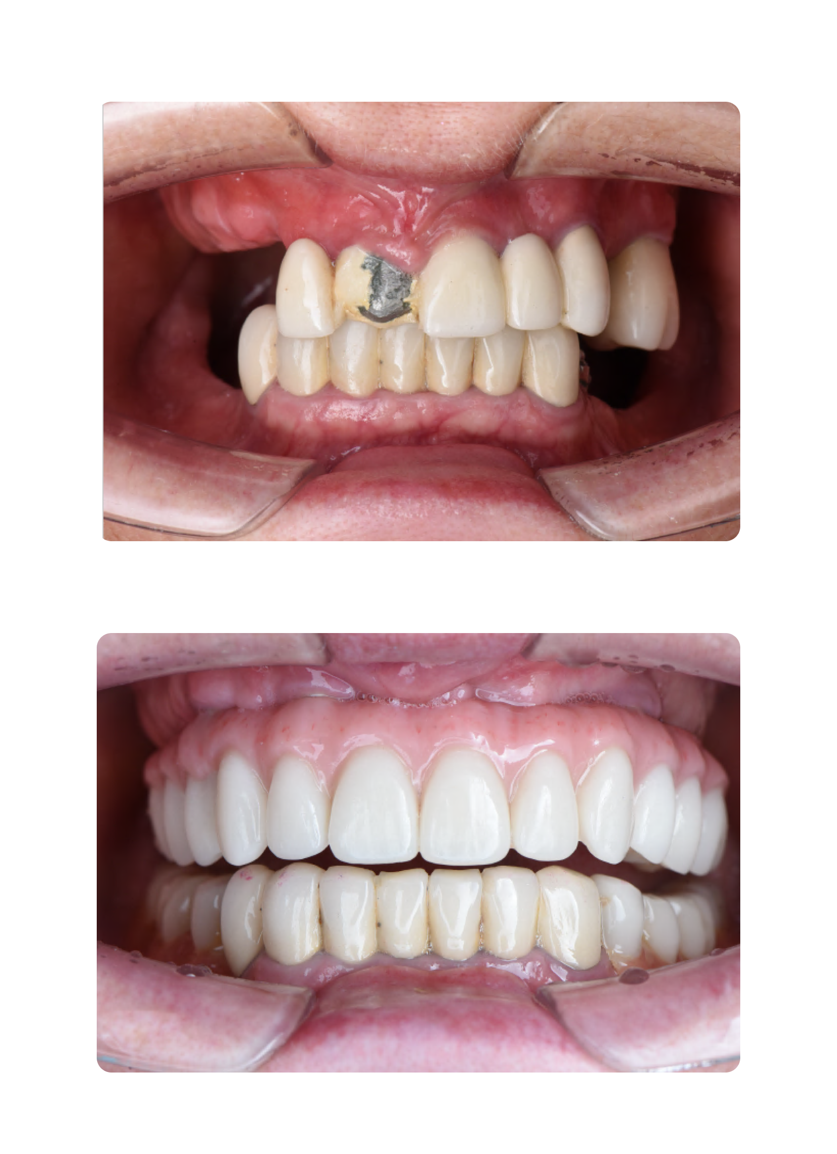 3. Результат Цель лечения полностью достигнута благодаря передовой швейцарской технологии All-on-4 . Жевательная функция и эстетика полностью восстановлены! Дискомфорт и стеснение остались в прошлом. Алексей Дмитриевич рассказал, что чувствует себя просто отлично. Он стал больше улыбаться и радоваться своей новой улыбке.